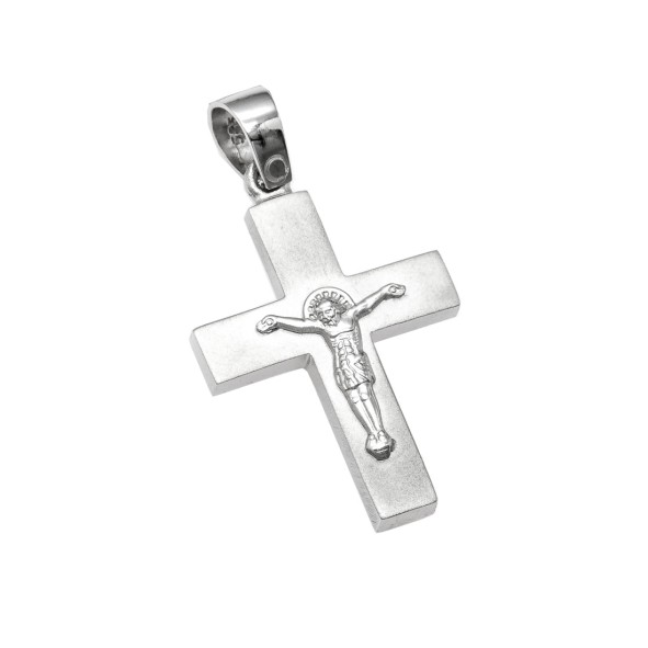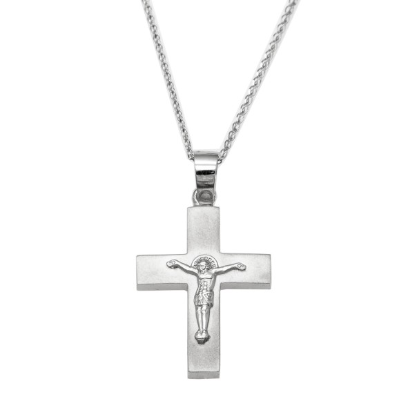 CROSS WITH CHAIN IN WHITE GOLD K14