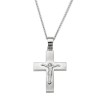 A stunning chain cross in K14 white gold with an elaborate design, the Crucifix in the center and a mat finish. Perfect for a boy’s christening.