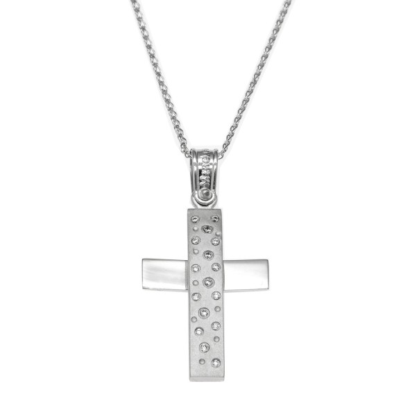 CROSS WITH CHAIN IN WHITE GOLD K14