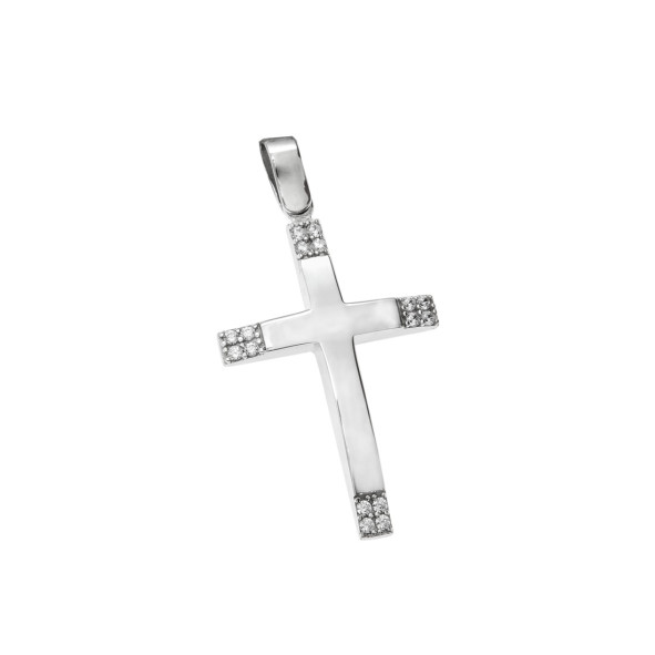 CROSS WITH CHAIN IN WHITE GOLD K14