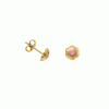 Children’s earrings in 9 carat gold with ornate design decorated with pink enamel and a white zircon.