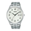 A classic Lorus men’s watch with stainless steel case and bracelet in silver color. The dial is white and has indicators and indicators in silver.