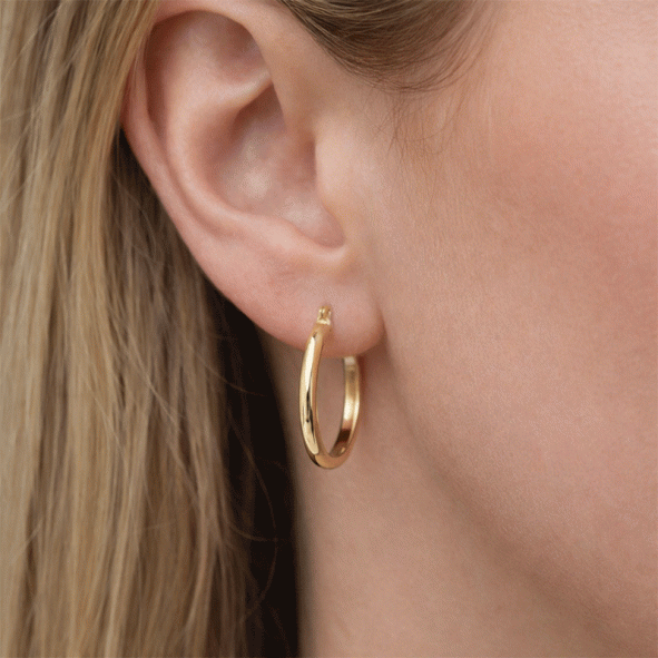 A stunning pair of 14k gold hoop earrings in a round shape and polished finish.