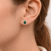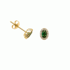 Impressive rosette earrings in 9 karat gold with an elaborate oval design and a green zircon in the center adorned with white zircons.