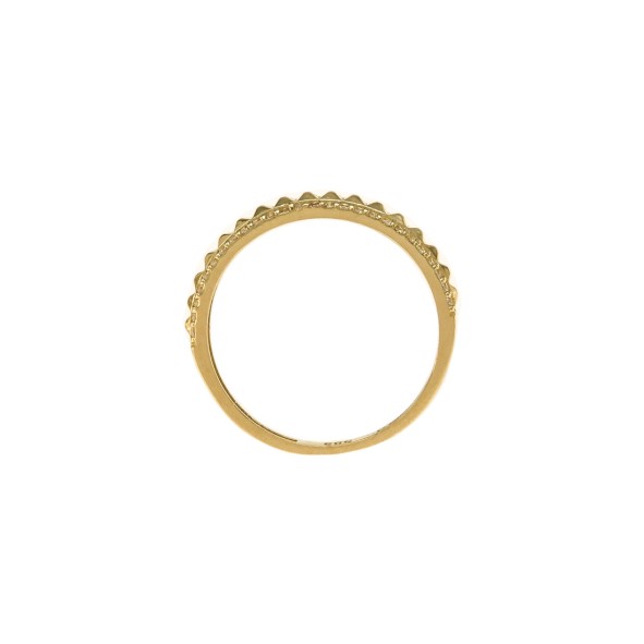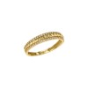 A stunning ring in 14k gold with an elaborate design adorned with white zircons and a lustrous finish.