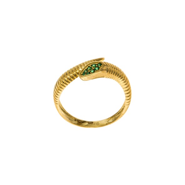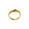 A stunning ring in 9 carat gold with a lustrous finish adorned with green zircons.