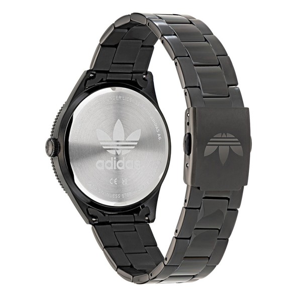 An impressive ADIDAS watch of the EDITION THREE series with a stainless steel case and bracelet in black color. The dial in black with colorful embossed indicators and indicators.