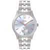 Ένα μοντέρνο γυναικείο ρολόι JCOU της σειράς ESTELLE με κάσα και μπρασελέ από ανοξείδωτο ατσάλι σε ασημί χρώμα. Το καντράν σε ασημί χρώμα με ενδείξεις και δείκτες σε ροζ χρυσό χρώμα.