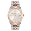 Ένα μοντέρνο γυναικείο ρολόι JCOU της σειράς QUEEN’S II με κάσα και μπρασελέ από ανοξείδωτο ατσάλι σε ασημί-ροζ χρυσό χρώμα. Το καντράν σε λευκό χρώμα με ενδείξεις και δείκτες σε ροζ χρυσό χρώμα.