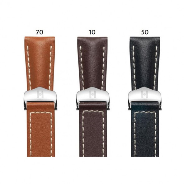 Δερμάτινο λουράκι HIRSCH της σειράς NAVIGATOR CALFSKIN από ιταλικό δέρμα σε μαύρο,καφέ ανοιχτό, καφέ σκούρο χρώμα με λευκές ραφές και αναδιπλούμενη αγκράφα από ανοξείδωτο ατσάλι.